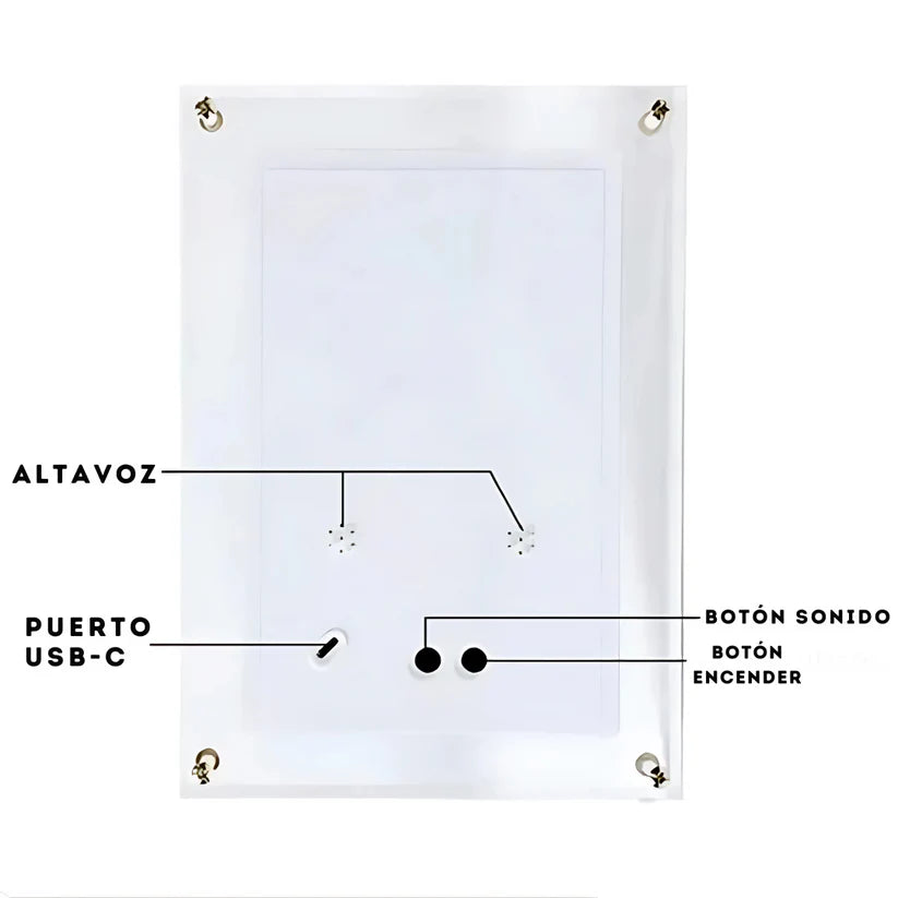 Nuestro cuadro digital te permite revivir cada instante en un lugar especial de tu casa. Fácil de usar, elegante y listo para emocionar: cargás tus fotos y ecografías en segundos, y cada vez que lo mires sentirás que tus recuerdos cobran vida.